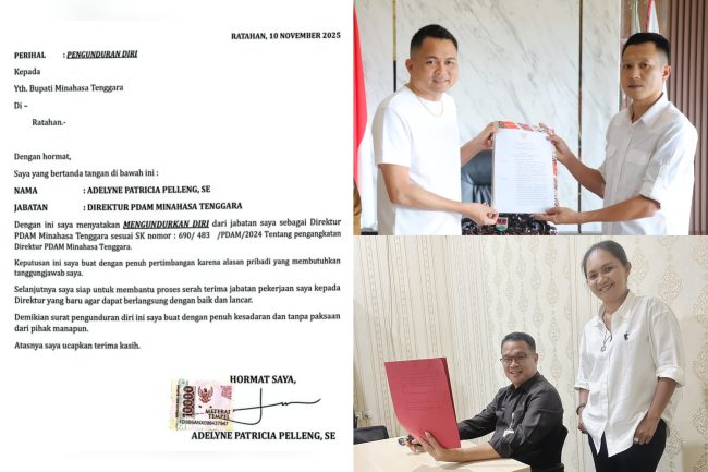 SULUTDAILY|| Ratahan – Setelah menunggu 14 hari, eks Direktur PDAM Minahasa Tenggara (Mitra) Adelyne Pelleng, akhirnya menerima kabar resmi bahwa permohonan pengunduran dirinya disetujui Bupati Minahasa Tenggara Ronald Kandoli pada 24 November 2025.