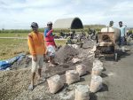Lebih lanjut, Kapten Czi. Sutono menuturkan, semen adalah bahan terpenting untuk memperkuat kualitas adonan pengecoran untuk jalan, dan sangat menguras tenaga untuk mengambilnya dari tumpukan material lalu di langsir memakai artco untuk di masukkan ke alat pengaduk mesin molen, dari pada bahan material adukan cor yang lainya seperti pasir semen maupun air.