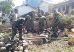“Satgas TMMD, ormas dan masyarakat, dengan semangat penuh, bahu membahu dan bergotong royong membuat tanggul tersebut, walau panas menyengat namun tetap semangat dan gembira,” kata Lettu Inf Julen Kasiaheng