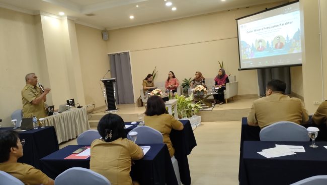 Narasumber, Pusat Penguatan Karakter Kementerian Pendidikan, Kebudayaan, Riset dan Teknologi RI Surya Nila Sari, dengan peserta Kepala Sekolah SD maupun SMP se-Kota Tomohon. (davyt)