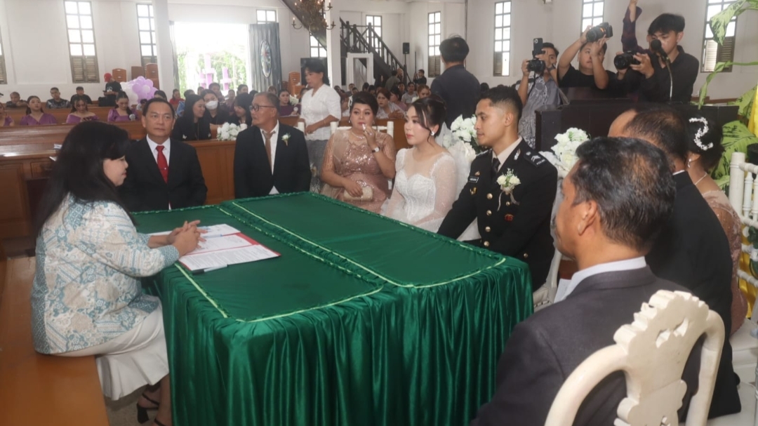 Pemberkatan nikah dengan Khadim Pdt Gina Budiman STh, ikut dihadiri Wakil Walikota Tomohon Sendy GA Rumajar SE MIKom.