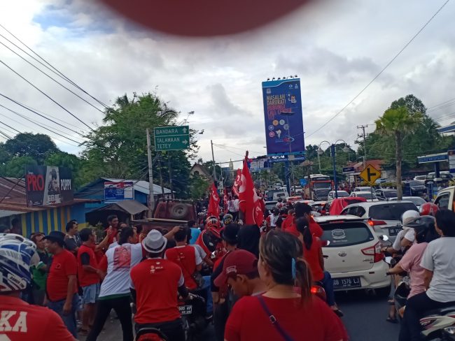 Ribuan pendukung Jokowi sudah memadati kota Manado hingga Jl AA Maramis Lapangan Sam Ratulangi Manado. Meski kedatangan kali ini tidak untuk kampanye tapi kunjungan sebagai Kepala negara.