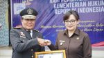 Penghargaan tersebut diserahkan langsung Kepala Kantor Wilayah Kemenkumham Sulut Kurniawan Telaumbanua. (davyt)